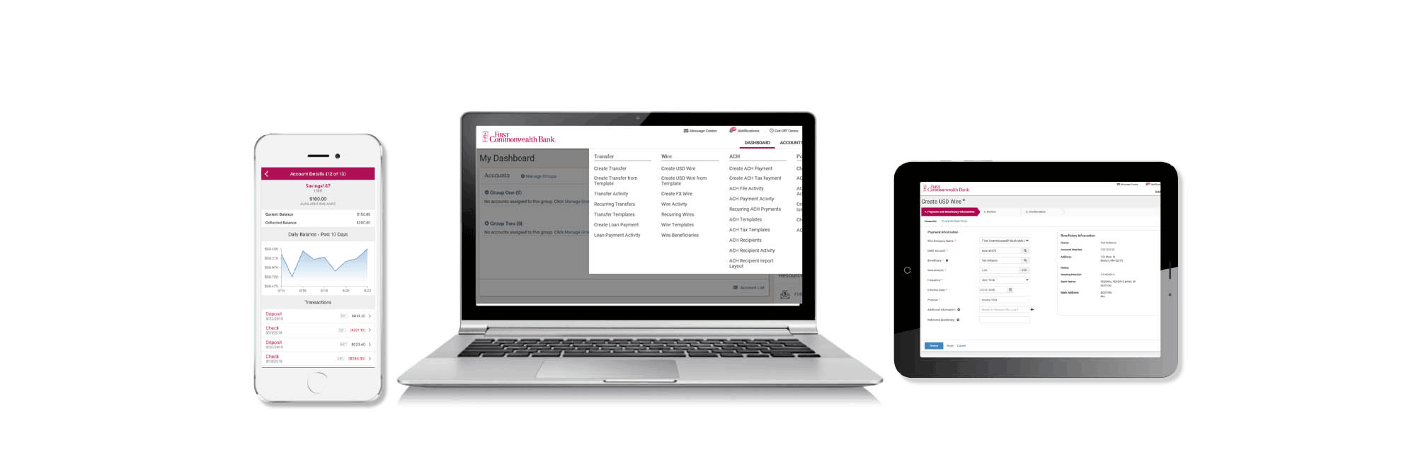 Seamless Experience Across Any Device - Manage critical Treasury Management tools and all of your accounts regardless of whether you're in the office or on the road.